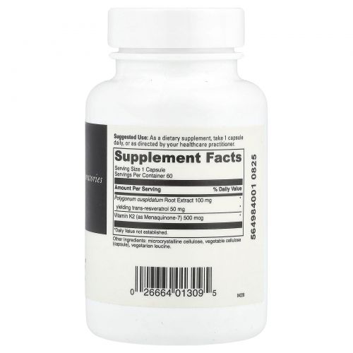 Описание товара DaVinci Laboratories, Витамин K2 + ресвератрол, 60 капсул