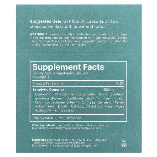 Описание товара Elysium, Senolytic Complex, 8 капсул