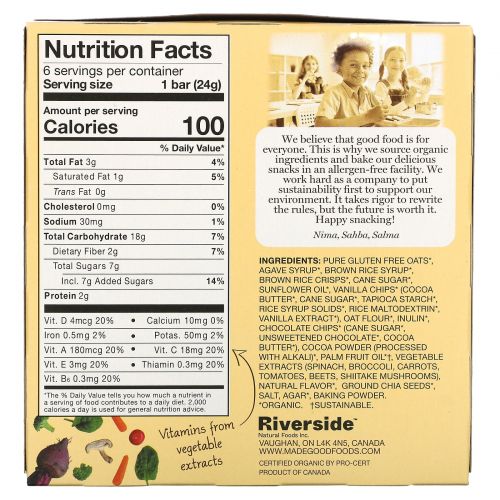 Описание товара MadeGood, Granola Bar, Cookies & Crème, 6 Bars, 0.85 oz (24 g) Each