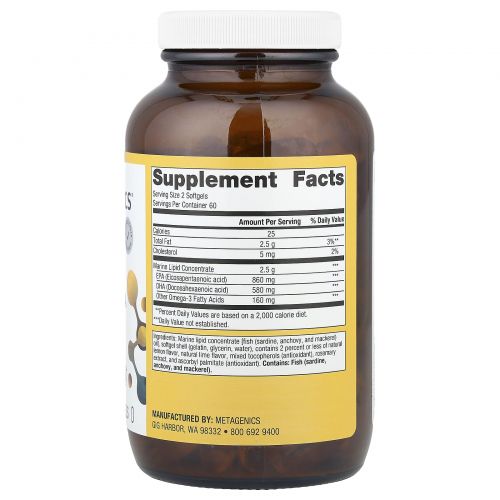 Описание товара Metagenics, OmegaGenics®, рыбий жир с ЭПК и ДГК, натуральный лимон и лайм, 720 мг, 120 мягких таблеток
