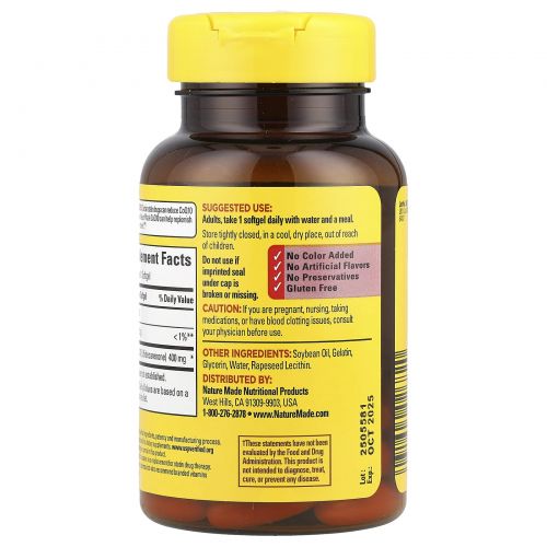 Описание товара Nature Made, Коэнзим Q10, 400 мг, 40 мягких таблеток