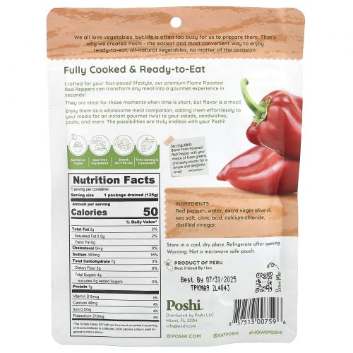 Описание товара Poshi, Easy Chef, красный перец с нерафинированным оливковым маслом высшего качества, 152 г (5,4 унции)