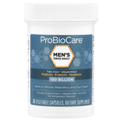 ProBioCare, Men's Once Daily, пребиотик, пробиотик, постбиотик, 100 млрд, 30 растительных капсул