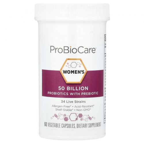 ProBioCare, Пробиотики для женщин с пребиотиками, 50 млрд, 60 растительных капсул