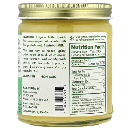 Описание товара Pure Indian Foods, органическое масло гхи, 220 г (7,8 унции)