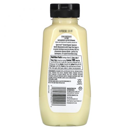 Описание товара Spectrum Naturals, Органический майонез, 11,25 жидких унций (332 мл)
