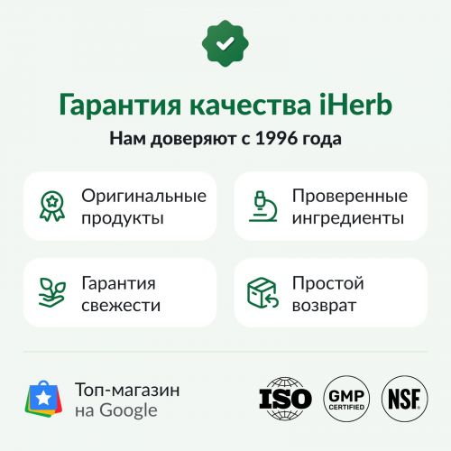 Компания ZaVitaminom всегда стремится придерживаться максимальной точности в изображениях и информации о своей продукции. Однако некоторые изменения, вносимые производителями, касающиеся упаковки или списка ингредиентов, могут потребовать определенного времени до того момента, как они будут опубликованы на сайте. Имейте в виду, что даже несмотря на то, что иногда упаковка товаров может изменяться, это никак не влияет на качество и свежесть продуктов. Мы рекомендуем вам внимательно ознакомиться с данными на упаковке, предупреждениями и инструкциями по использованию продуктов перед их применением и не полагаться исключительно на информацию, представленную на сайте ZaVitaminom.Обратите внимание, что некоторые из описаний продуктов на нашем сайте выполнены с использованием машинного перевода. Это сделано исключительно для вашего удобства. ZaVitaminom не гарантирует, что переводы являются полными и безошибочными, и не несет ответственности за ошибки или неточности при переводе.