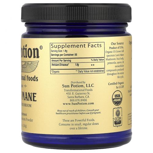 Описание товара Sun Potion, Organic Lion's Mane, 3.5 oz (100 g)