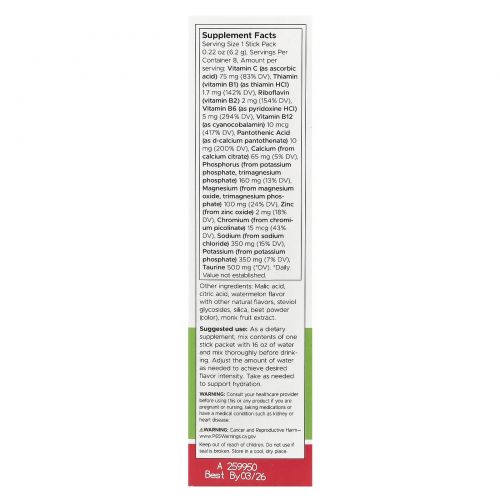 Описание товара Swanson, Simply Hydrate, смесь электролитов для гидратации, арбуз, 8 стик-пакетов по 6,2 г (0,22 унции)