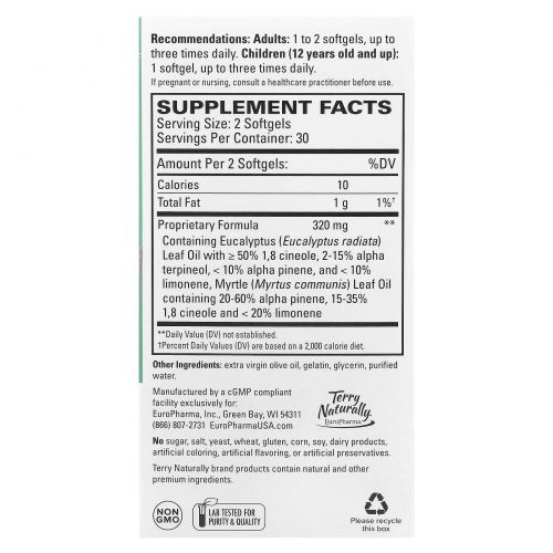 Terry Naturally, SinuCare ™ с эвкалиптом, 60 мягких таблеток