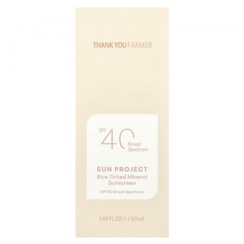 Thank You Farmer, Sun Project, минеральное солнцезащитное средство с рисовым оттенком, SPF40, 50 мл (1,69 жидк. Унции)