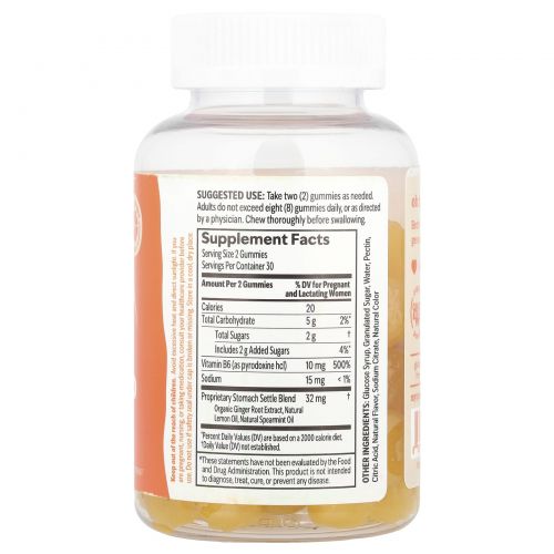 Описание товара UpSpring, Morning Sickness Relief, жевательные таблетки для желудка, лимонный имбирь, 60 веганских жевательных таблеток