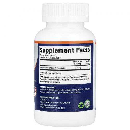 Vitamatic, Кофеин, 200 мг, 250 таблеток
