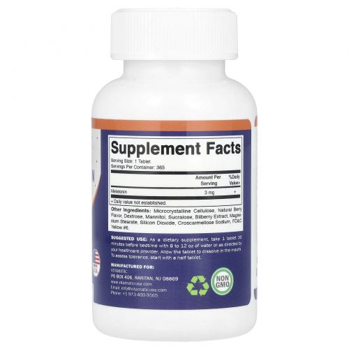 Описание товара Vitamatic, Мелатонин, натуральные ягоды, 3 мг, 365 быстро растворяющихся таблеток