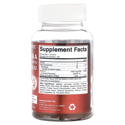 Vitamatic, витамин A (ретинилпальмитат), натуральная клубника, 25 000 МЕ, 120 жевательных таблеток