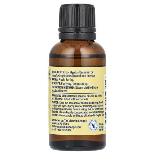 The Vitamin Shoppe, 100% чистое эфирное масло, эвкалипт, 30 мл (1 жидк. унц.)