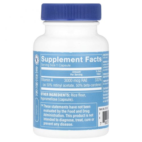 | Витамин A (в виде 50% ретинилацетата, 50% бета-каротина) | 3000 мкг RAE | 333% |
